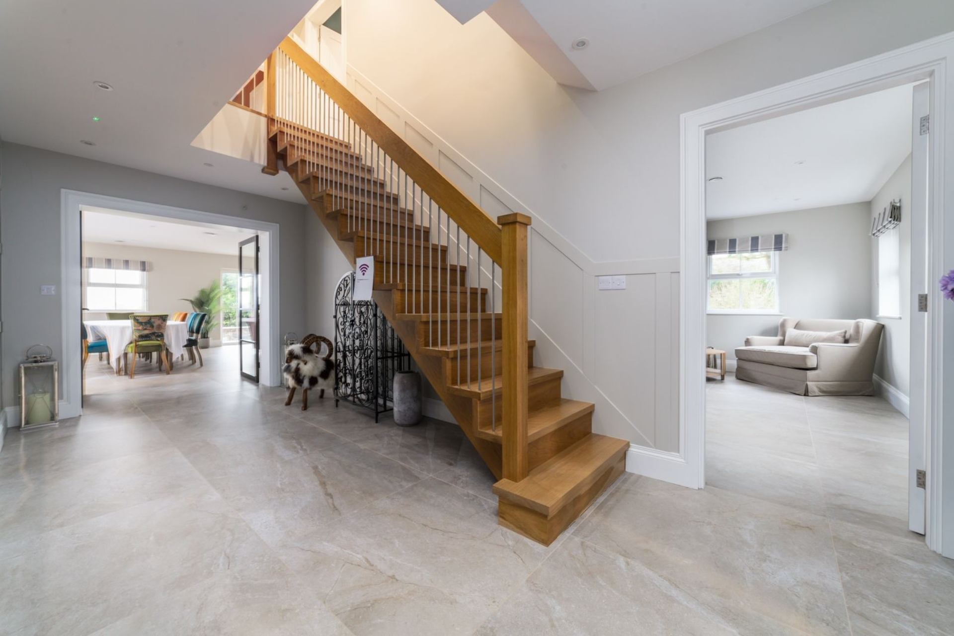 With five beautifully designed bedrooms, four of which feature en-suite bathrooms, guests will enjoy privacy and comfort throughout their stay. The home's two kitchens and two stylish sitting rooms provide ample space to cook, dine, and relax together.