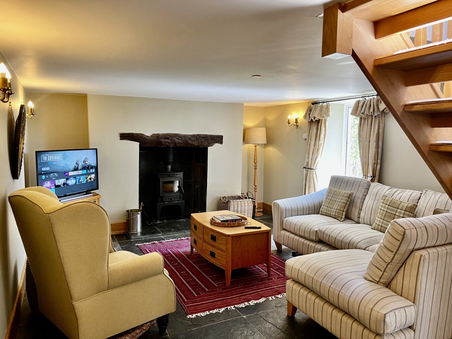 Inside, the cottage feels instantly welcoming. Underfloor heating throughout the ground floor, combined with a cosy log burner, ensures a warm and comfortable atmosphere in every season. Thoughtfully furnished and full of character, the living spaces strike a lovely balance between comfort and calm, making it an ideal home from home for couples, families or friends.