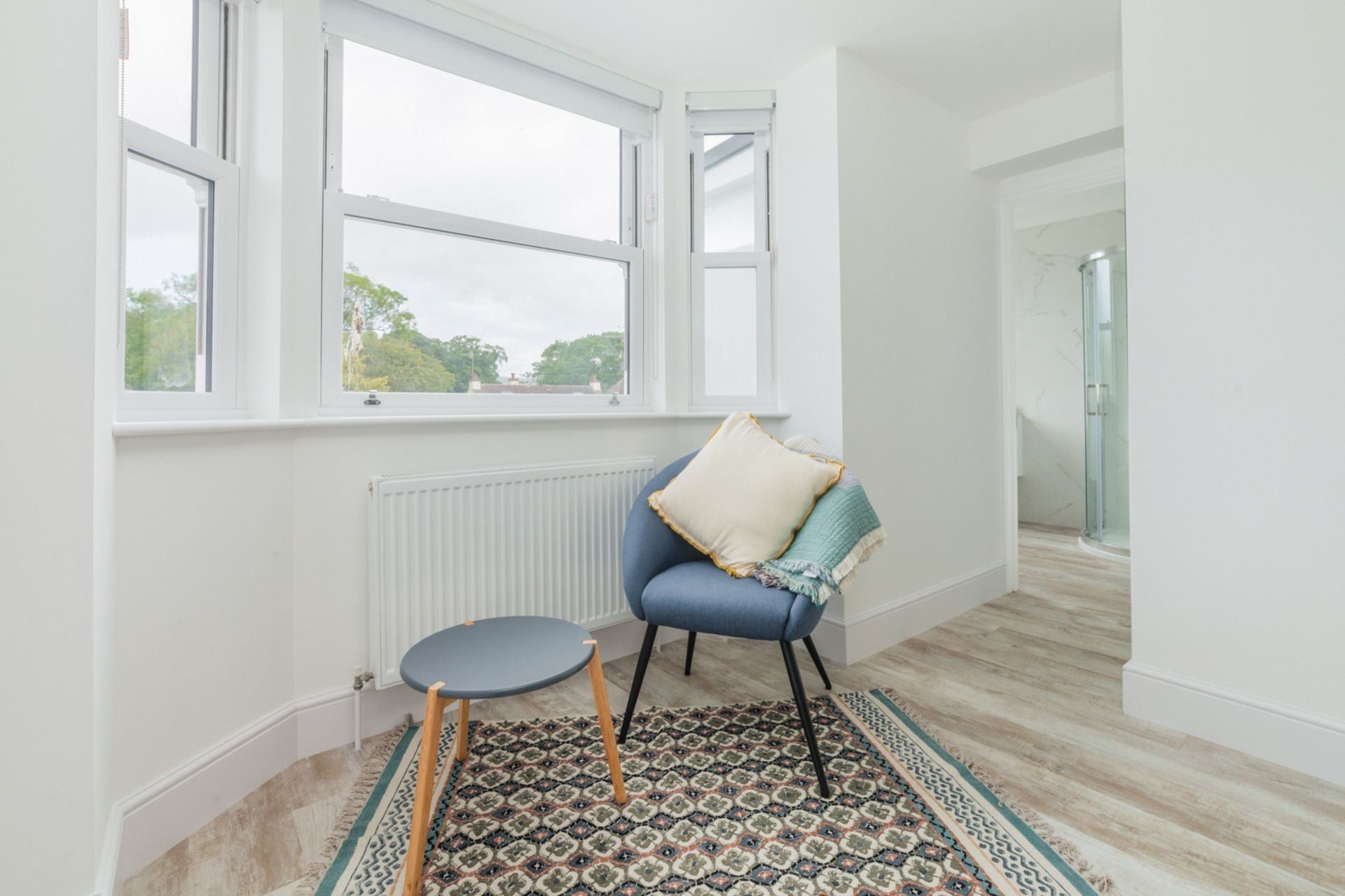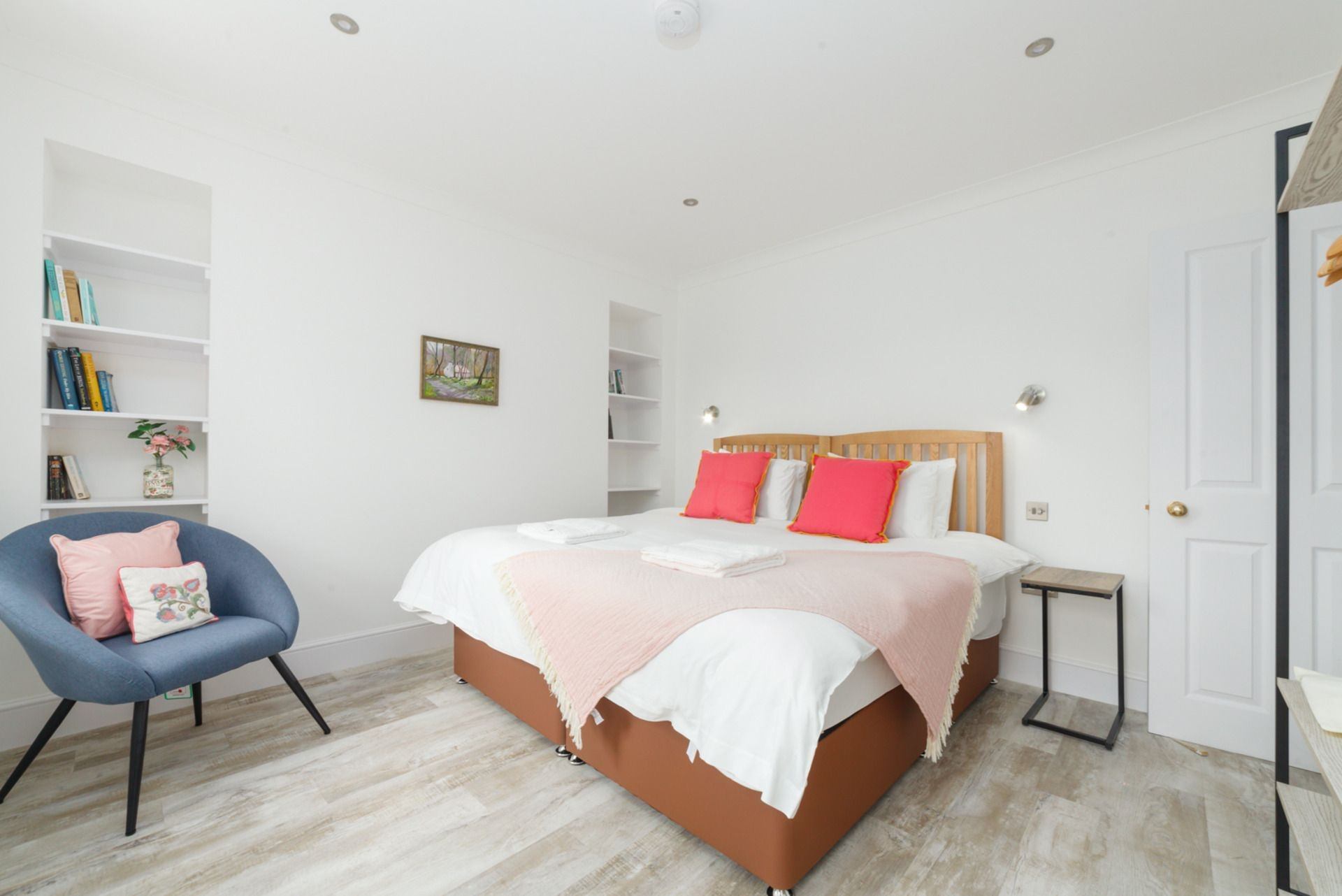 Bedroom 1: Super king beds that can be configured as a twin on request, Smart TV, occasional chair and hanging space.