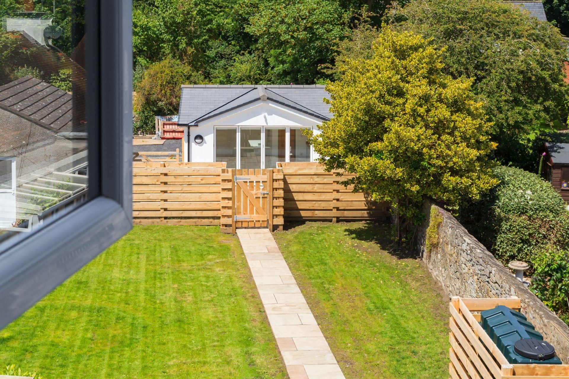 Garden: Spacious garden perfect for families, with a path leading to the rear parking area and garden room.
