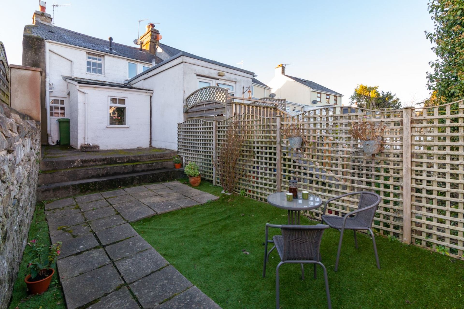 Cottage centrally located in Castletown for access to amenities eg: shops , buses , steam railway and pubs .\nGreat atmosphere in and around the market square .\nOn the whole a comfortable stay but the owners should make more of the garden to further enhance the property .\n