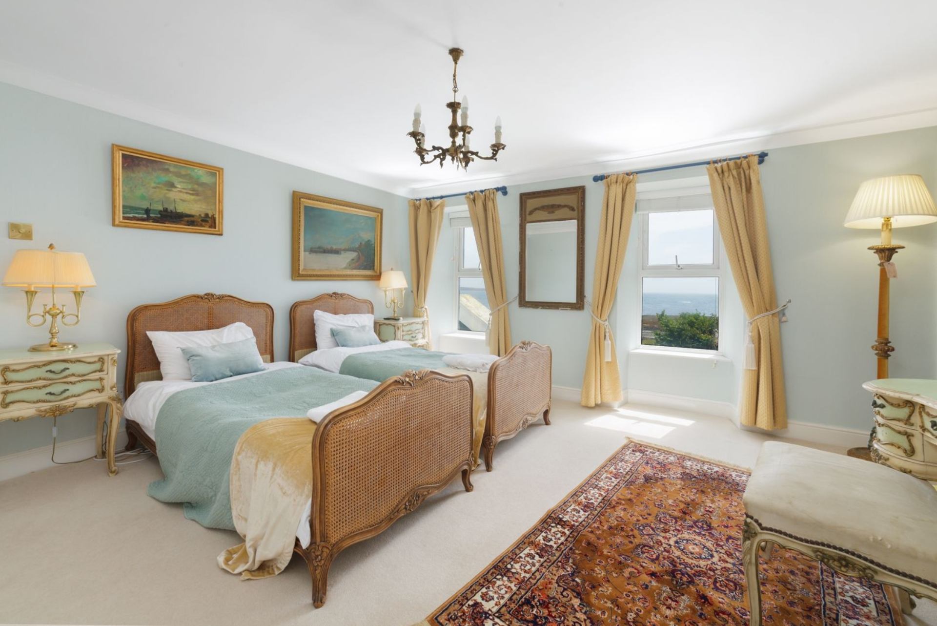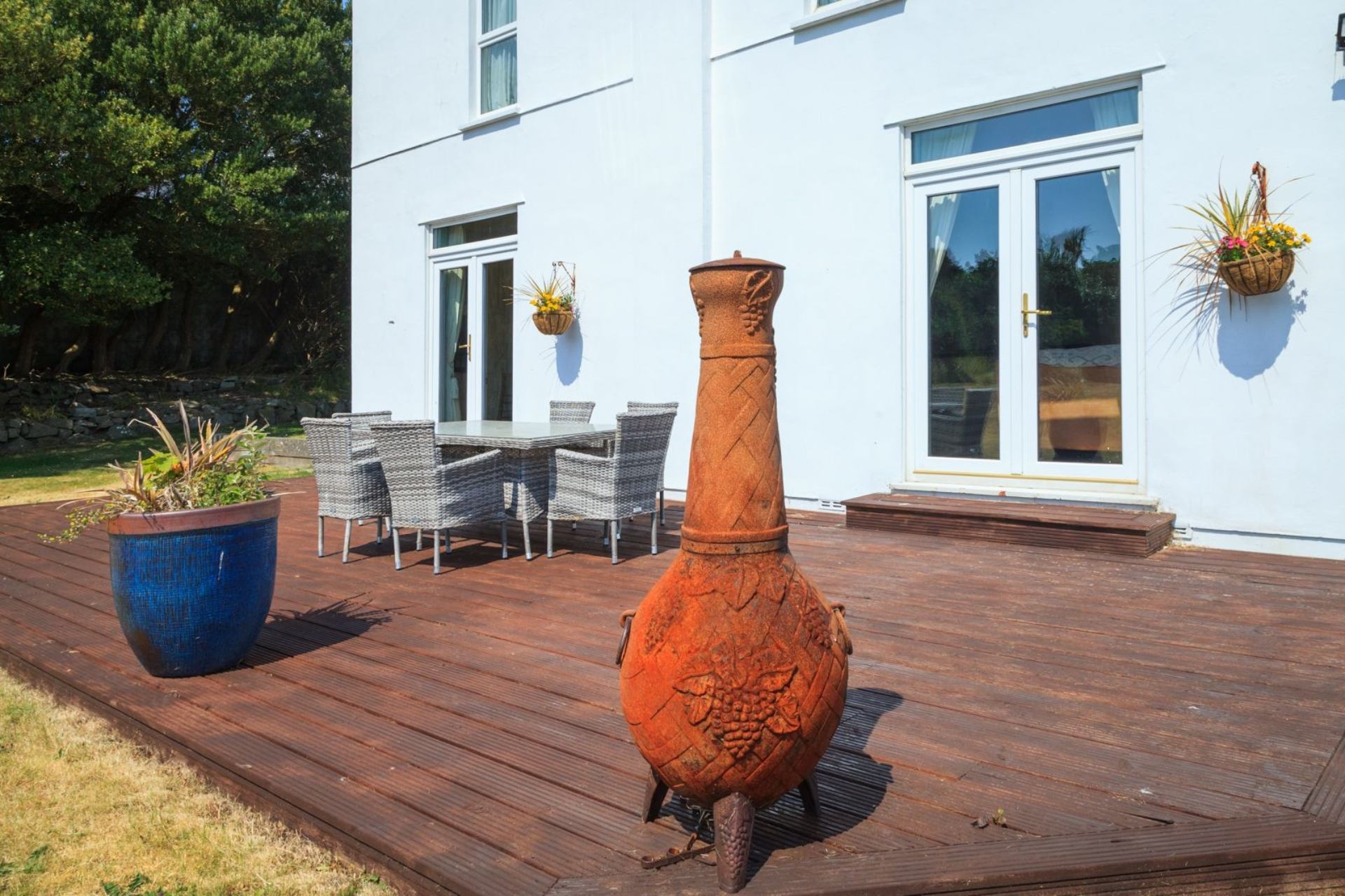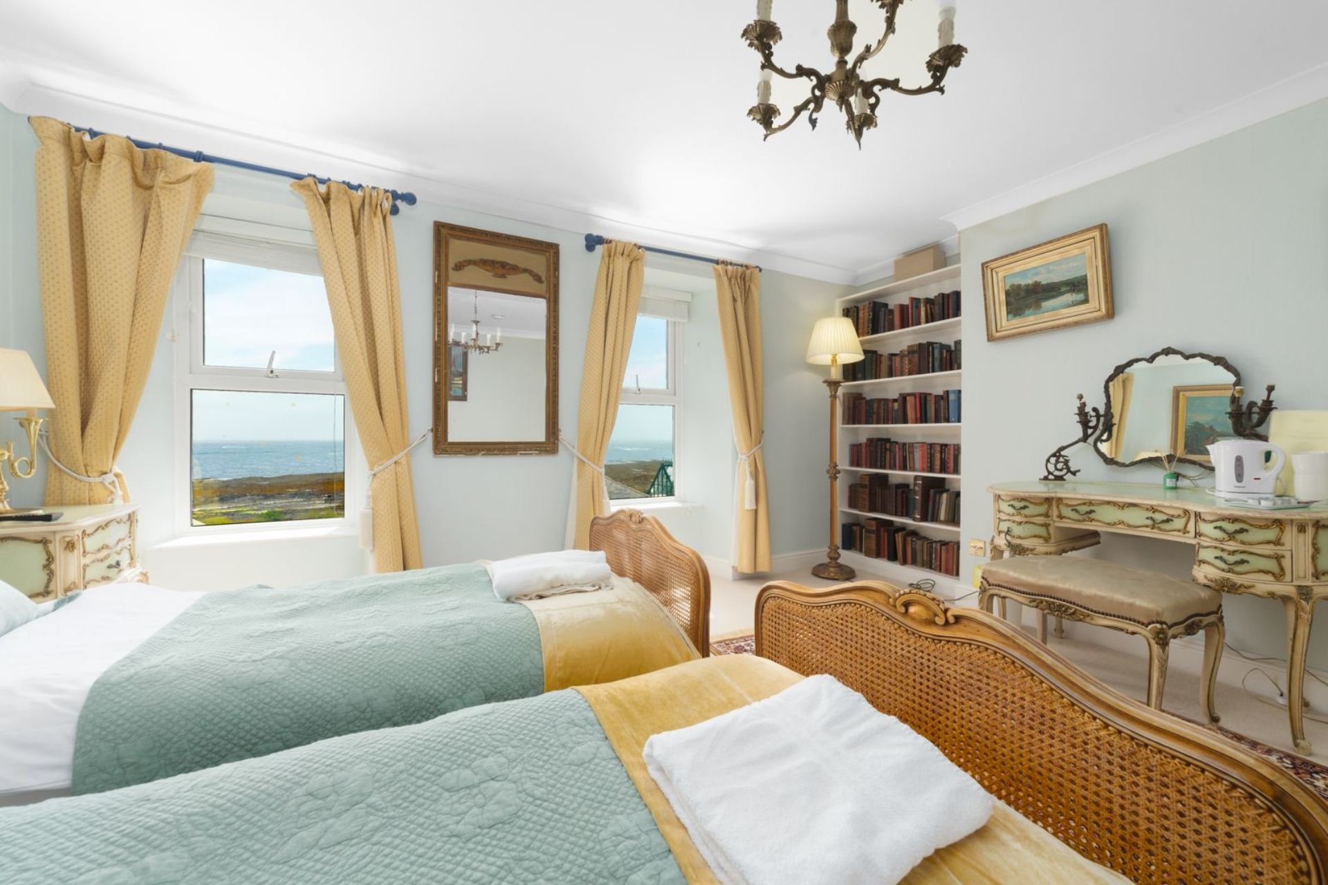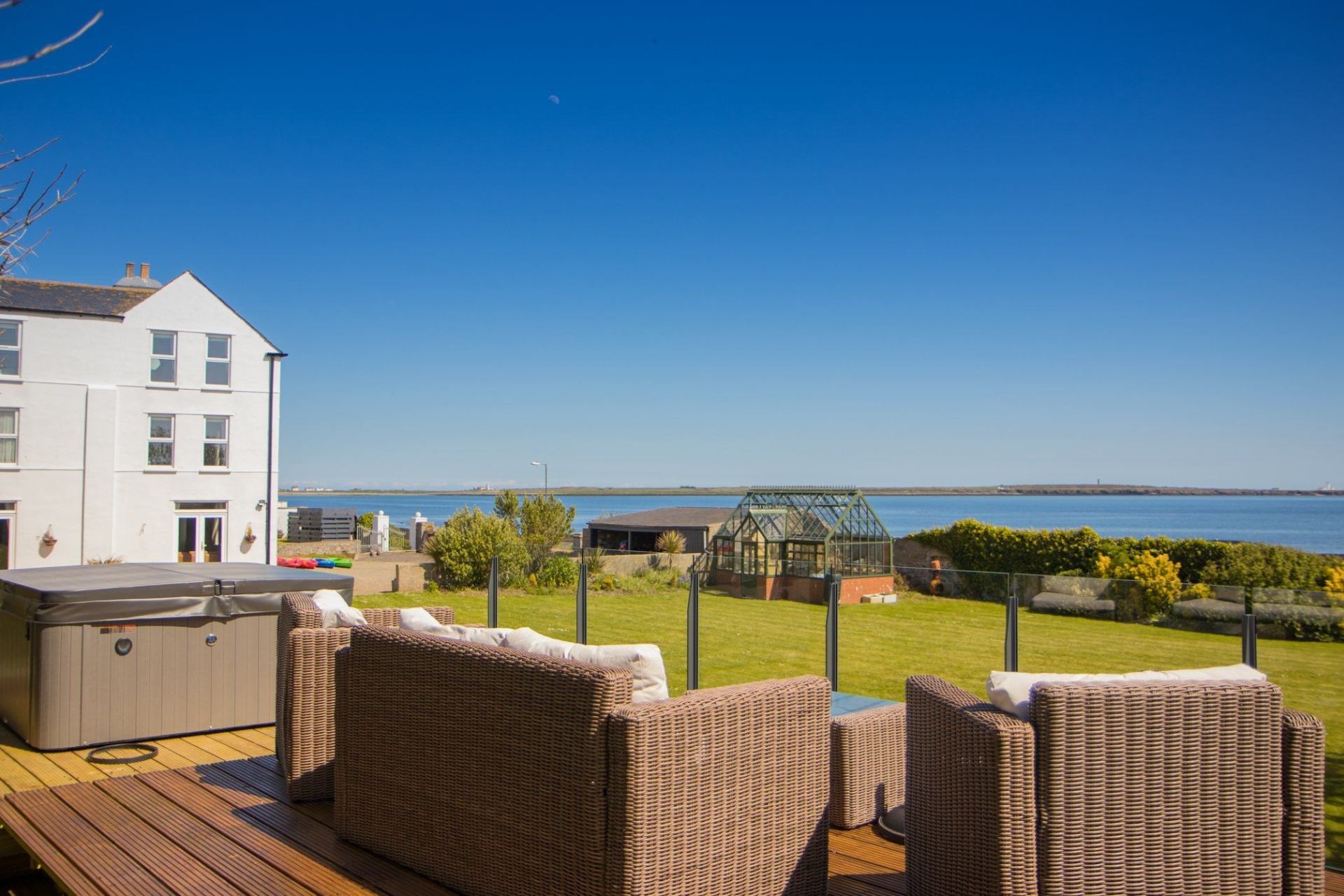 With 10 individually furnished bedrooms, the property can sleep up to 18 people in a choice of double, twin and single rooms. Each bedroom incorporates antiques, including original features and unique character, whilst excellent beds and elegant modern bathrooms have been added to ensure that you enjoy a most relaxing stay. Our bedrooms & bathrooms enjoy views over Castletown Bay, Scarlett Point, our walled garden & decking with our new Hot Tub Spa along with surrounding rolling countryside & green fields.