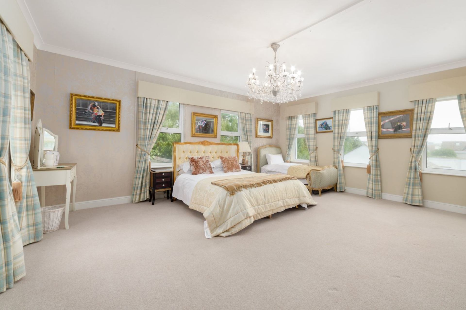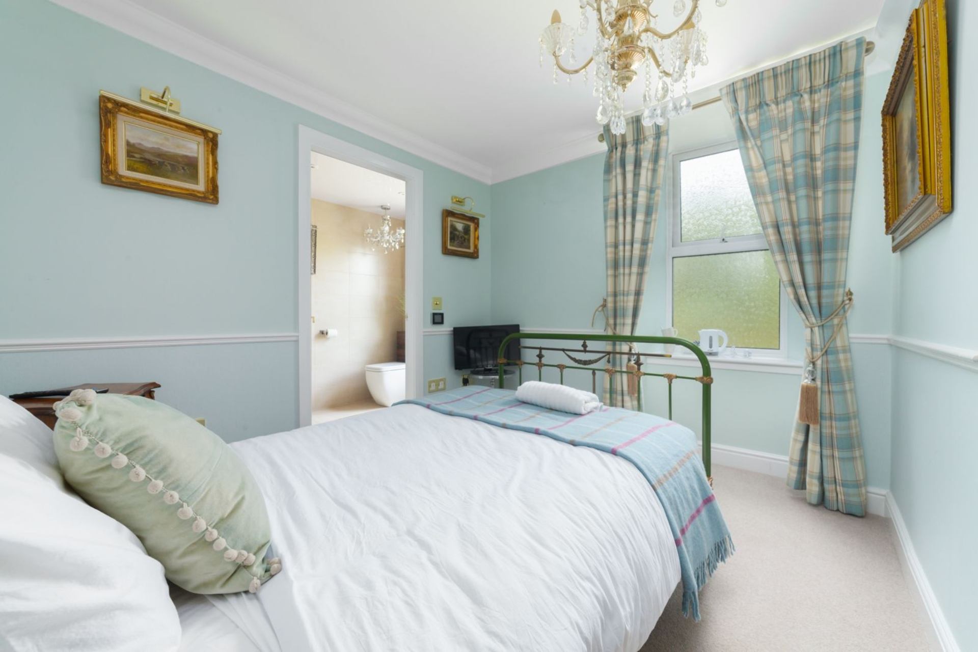 Bedroom 1 (Bray Hill): Double bed, Single bed, bedside tables, wardrobe, TV, ensuite bathroom.
