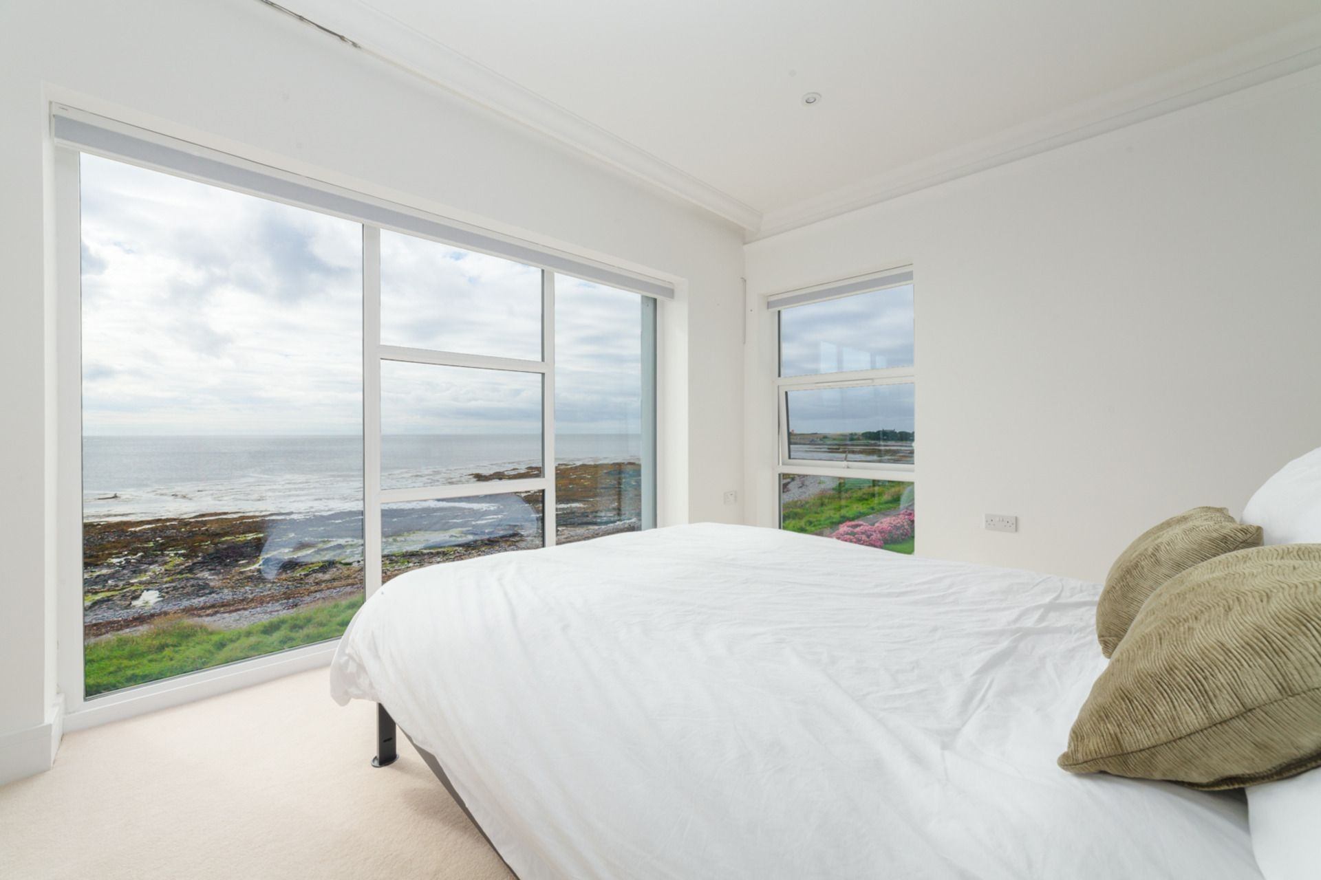 Bedroom 4: Double bed, bedside tables, chest of drawers, Smart TV, plentiful wardrobe space and large windows to enjoy the sea view!