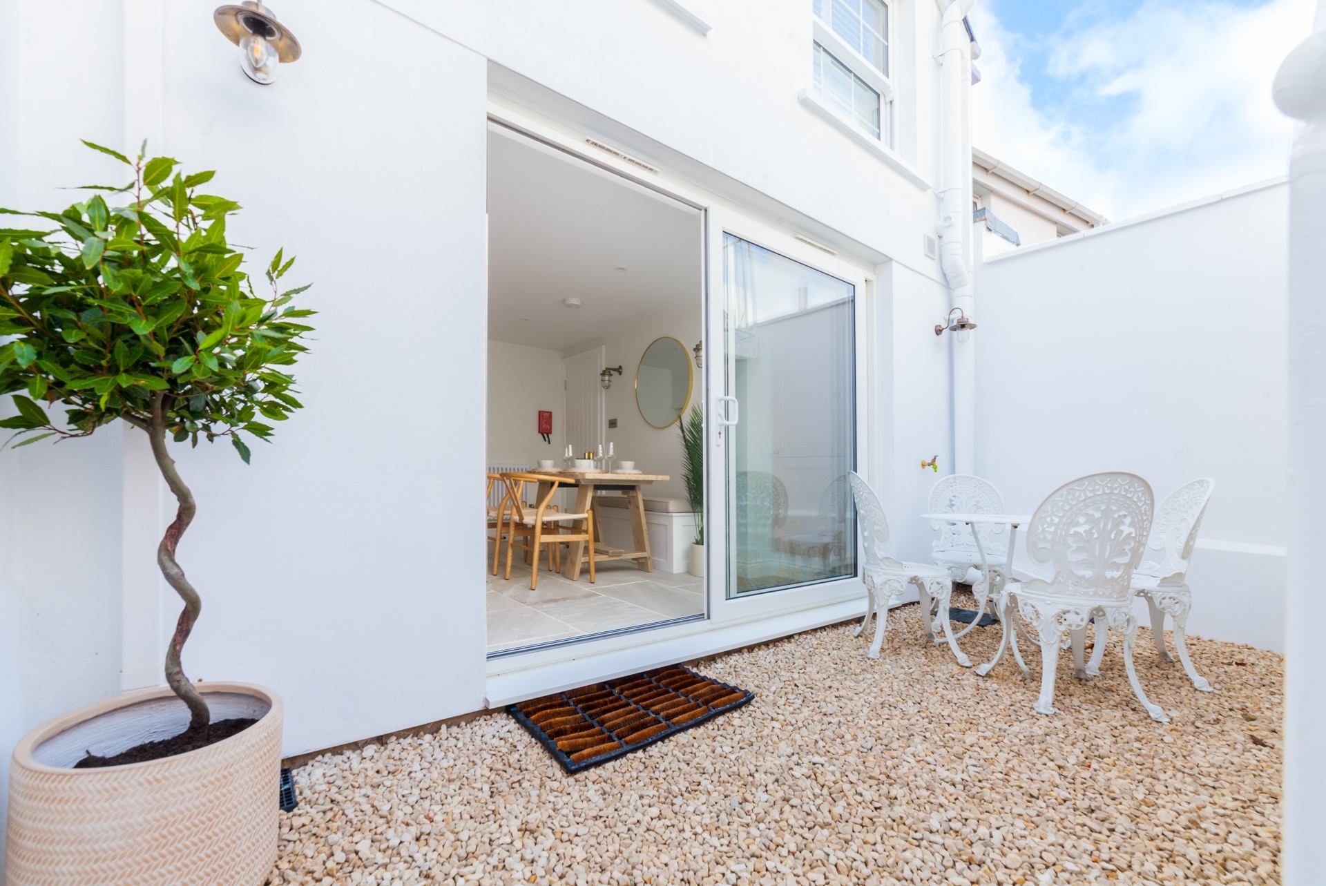 To the rear, a private courtyard provides an intimate outdoor escape, ideal for morning coffee or an evening glass of wine, adding to the feeling of understated indulgence.
