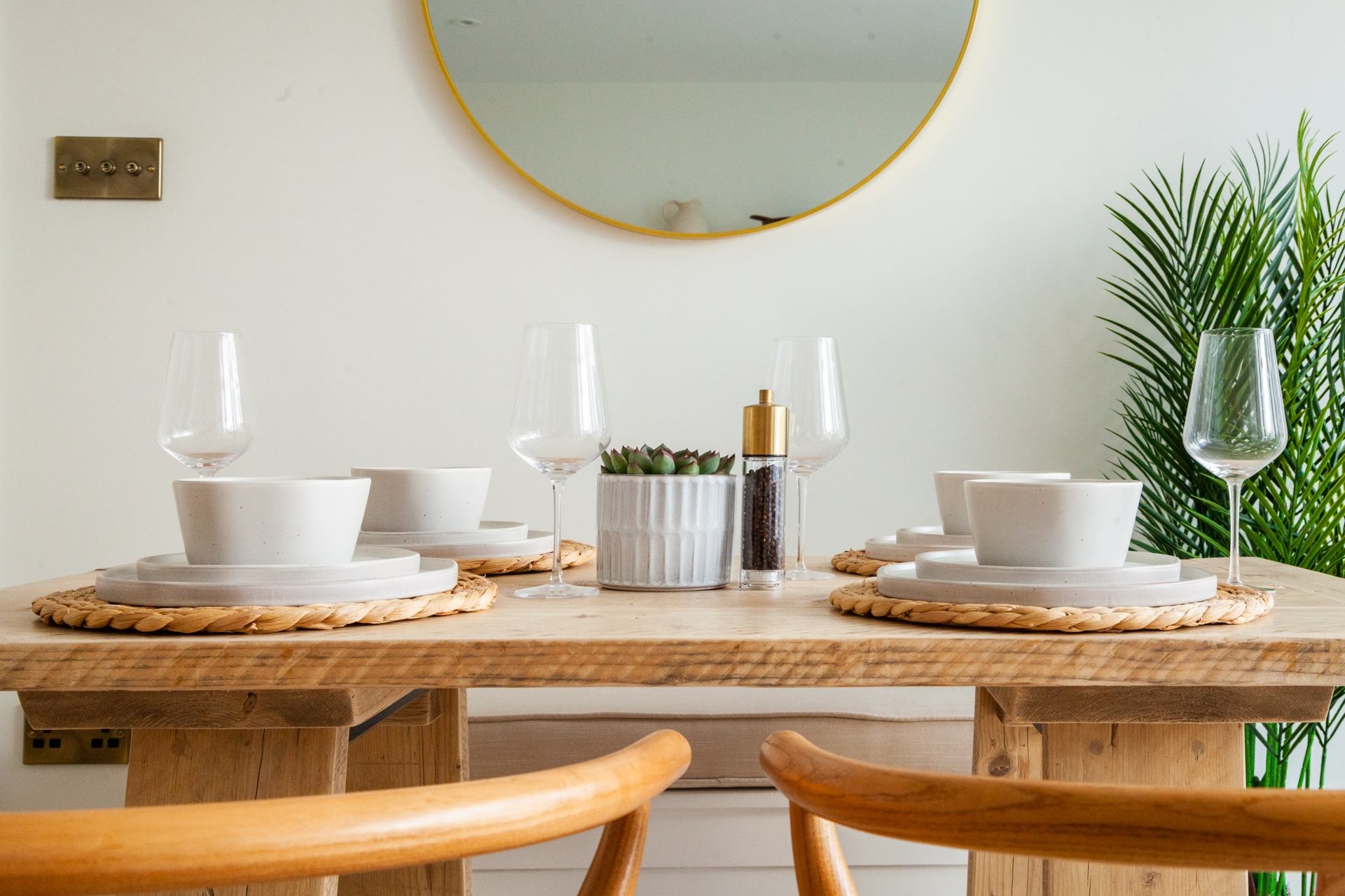 Kitchen: Beautifully presented, fully-equipped kitchen with a dining table and seating for four people, oven, hob, SMEG fridge/freezer, dishwasher, microwave, SMEG kettle and toaster