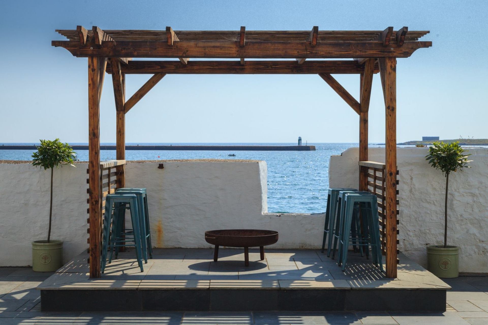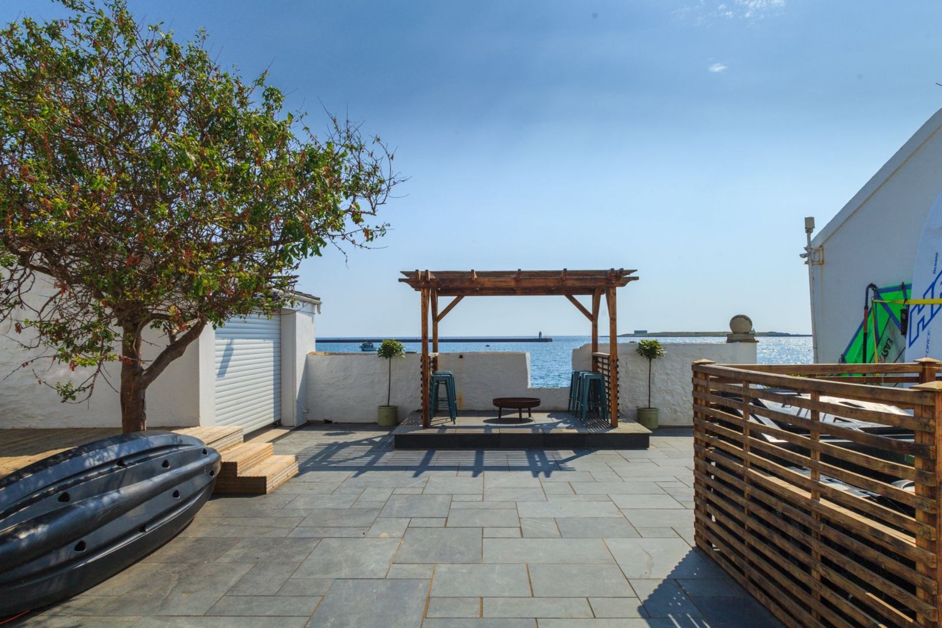 The patio area outside has sea views stretching over the calm, picturesque Derbyhaven Bay. Sit back, relax, and watch the fishing boats bob up and down in the water on high tide!