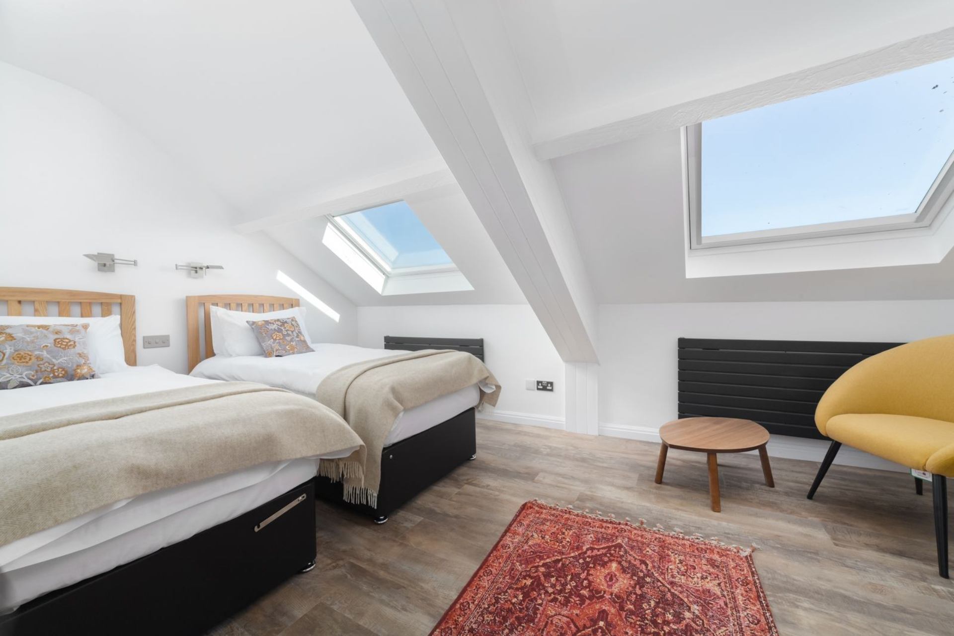 Bedroom 4: Twin beds, Smart TV, bedside tables, fitted wardrobe, chest of drawers, chair and Smart TV