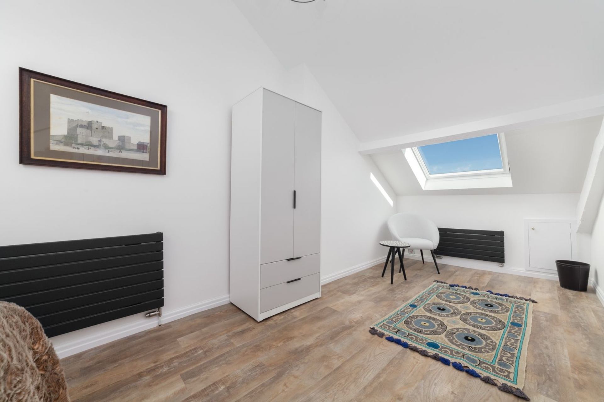Bedroom 3: Double bed, bedside tables, wardrobe, chair and Smart TV