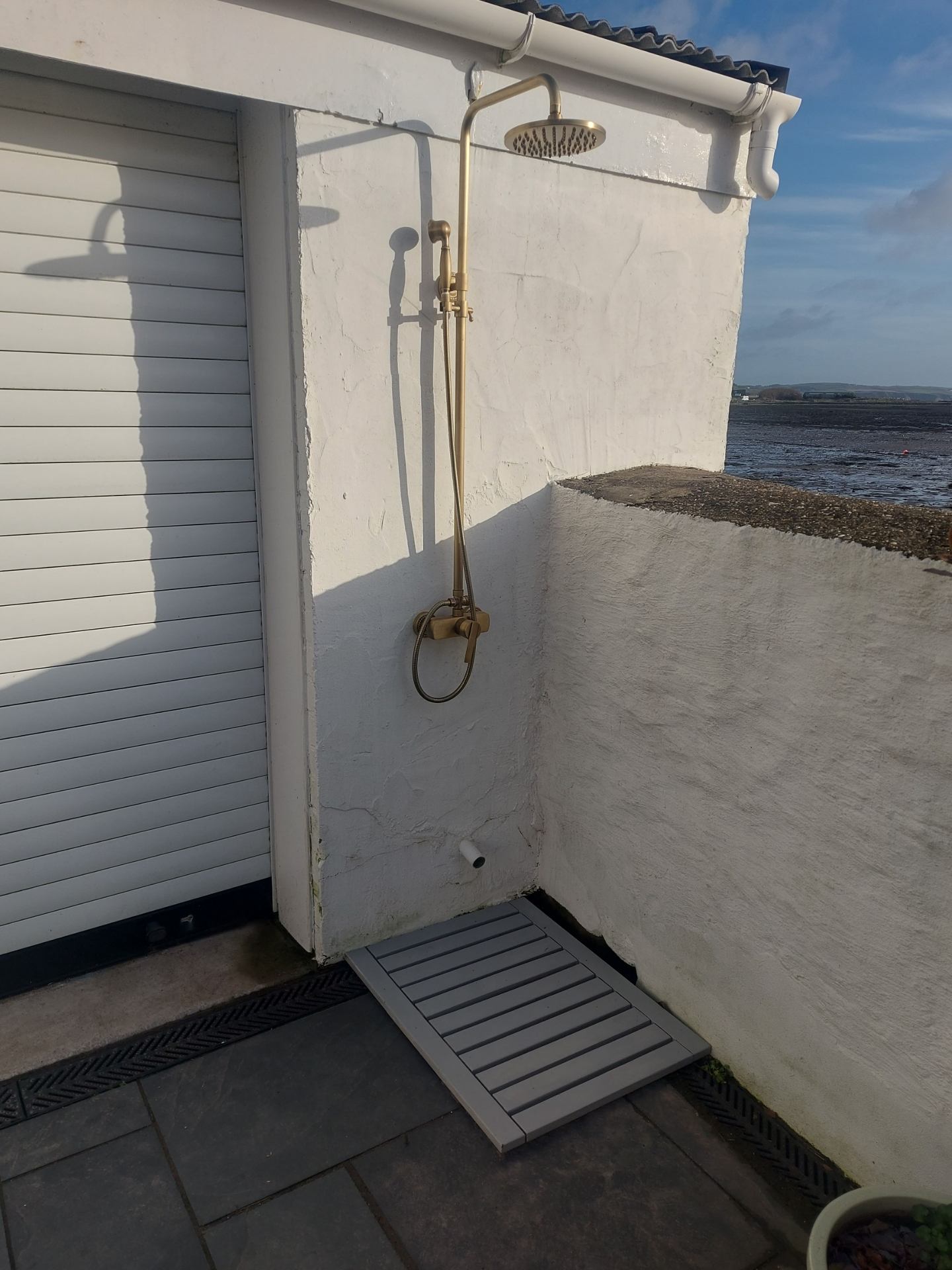 Outdoor space: Patio area at the front of the property with BBQ. The garage in the outdoor space is available for guests to store items such as bicycles or water sports equipment during their stay. No equipment provided for guests. There is an outdoor shower available for guest use with hot and cold water available.