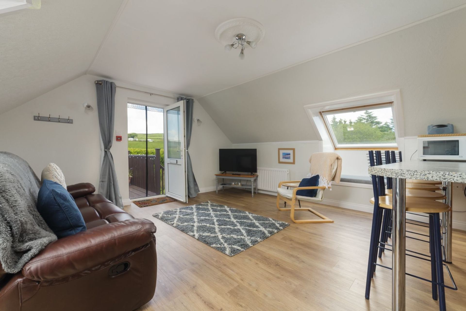 Our family with 2 young children had a great week in the Isle of Man, exploring the whole island from our accommodation. The living area and kitchen combined meant we were all together, with nice window seats looking out. There is separate space to spread out and the balcony allowed us to eat outside a few times. It was nice to explore the fruit and pond in the garden and fields and see the hens and ducks.\nWould be happy to return here, because we definitely want to visit the Island again.