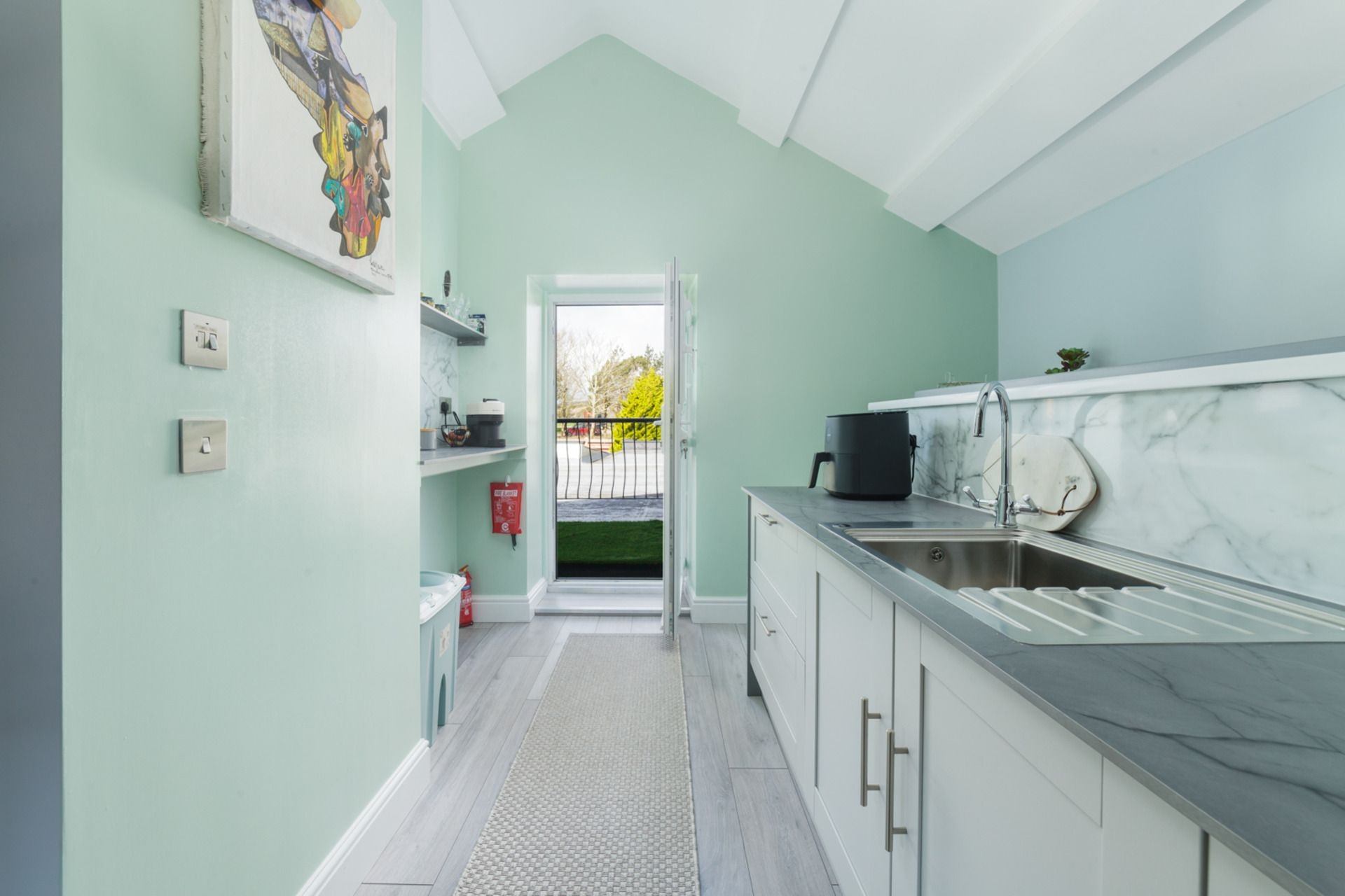 Kitchenette: Nespresso coffee machine, toaster, kettle, microwave, Fridge with ice box, air fryer. IMPORTANT: The Hayloft Studio does not contain an oven or a hob.