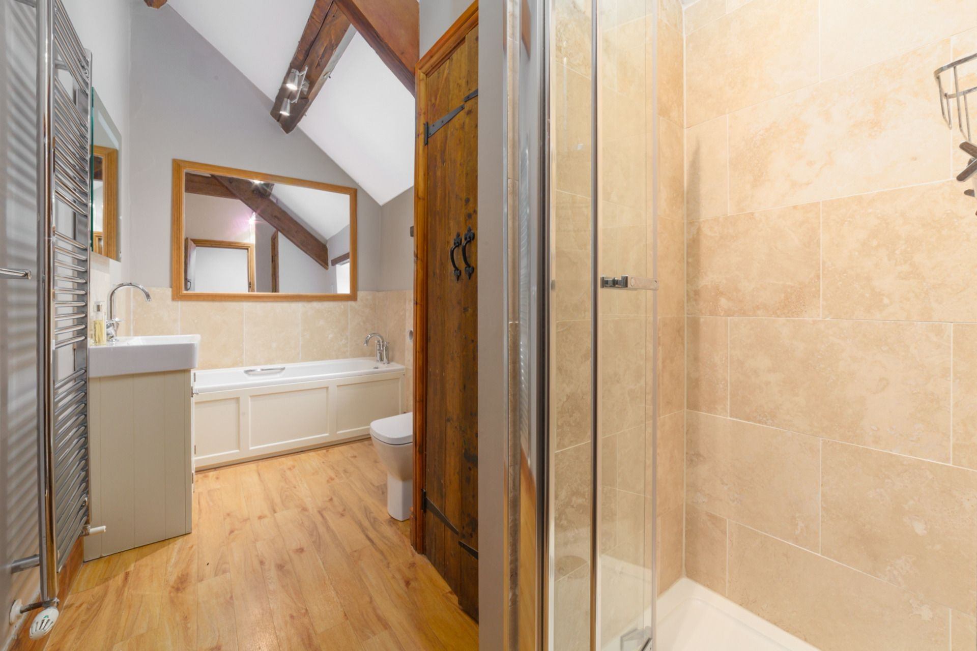 Bathroom: Separate bath and shower, washbasin and wc.
