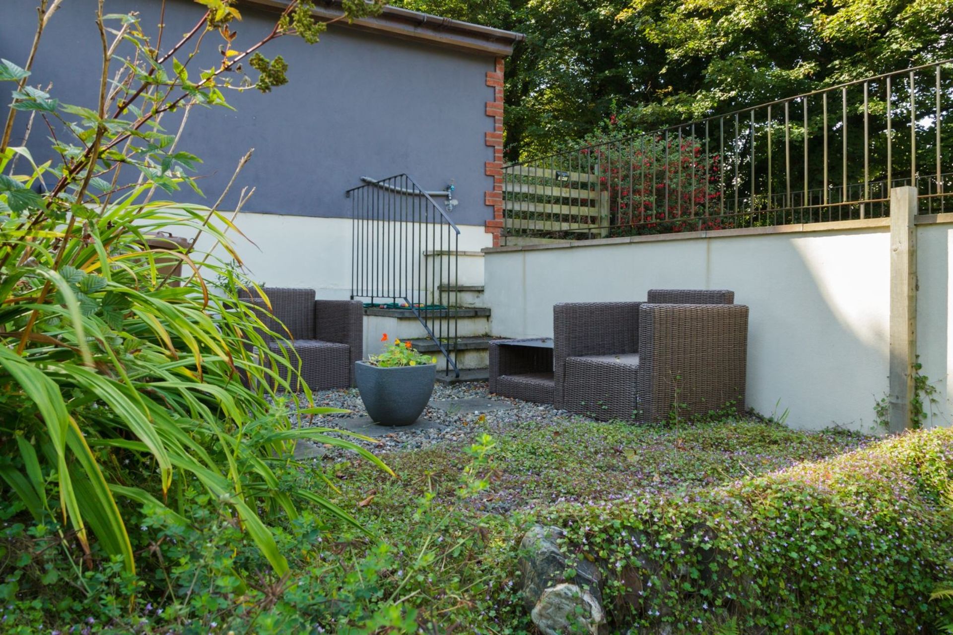 The lodge was extremely comfortable for 2 couples spending a week sightseeing in the Isle of Man. The kitchen is well equipped, everything we needed was supplied and a welcoming package of fresh bread, duck eggs and chocolate much appreciated. The owners live close by and were most helpful when we arrived. They offered further assistance while we were there, though that was not required. Care is needed when exiting the property on to the main A3 road as the cottage is located on a bend. However, the lower entrance provides a good and safe line of sight in both directions. The garden has a small pool and a choice of terraces which were pleasant to sit out on. It certainly proved a very suitable location for us, and lived up exactly to the description on the website. There were pleasant walks close by, including the nearby Glen Wyllin and into Kirk Michael village, about 10-15 minutes on foot. I would certainly recommend this property.