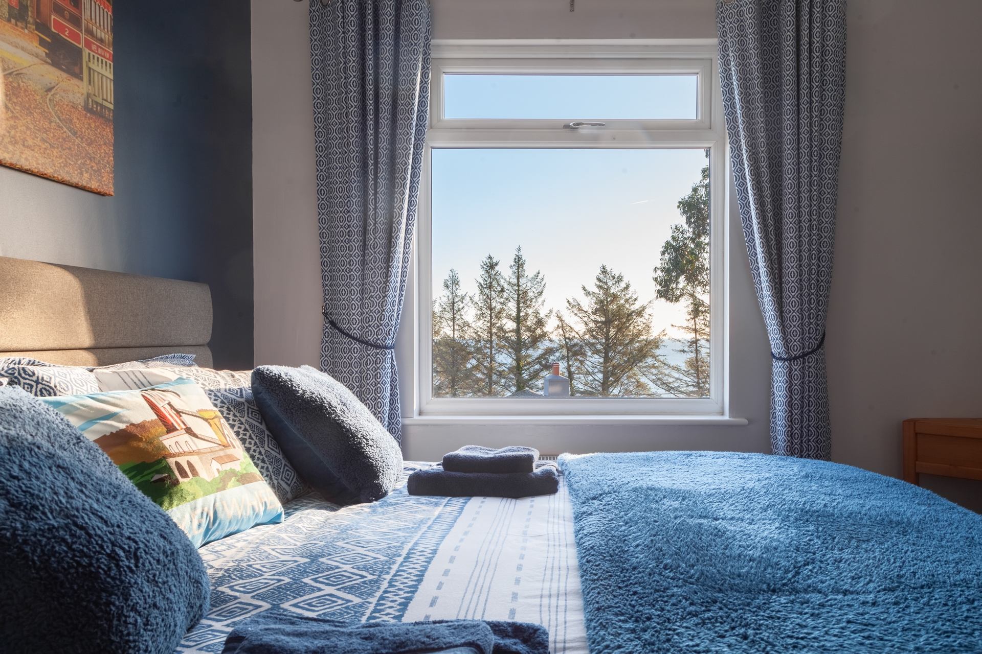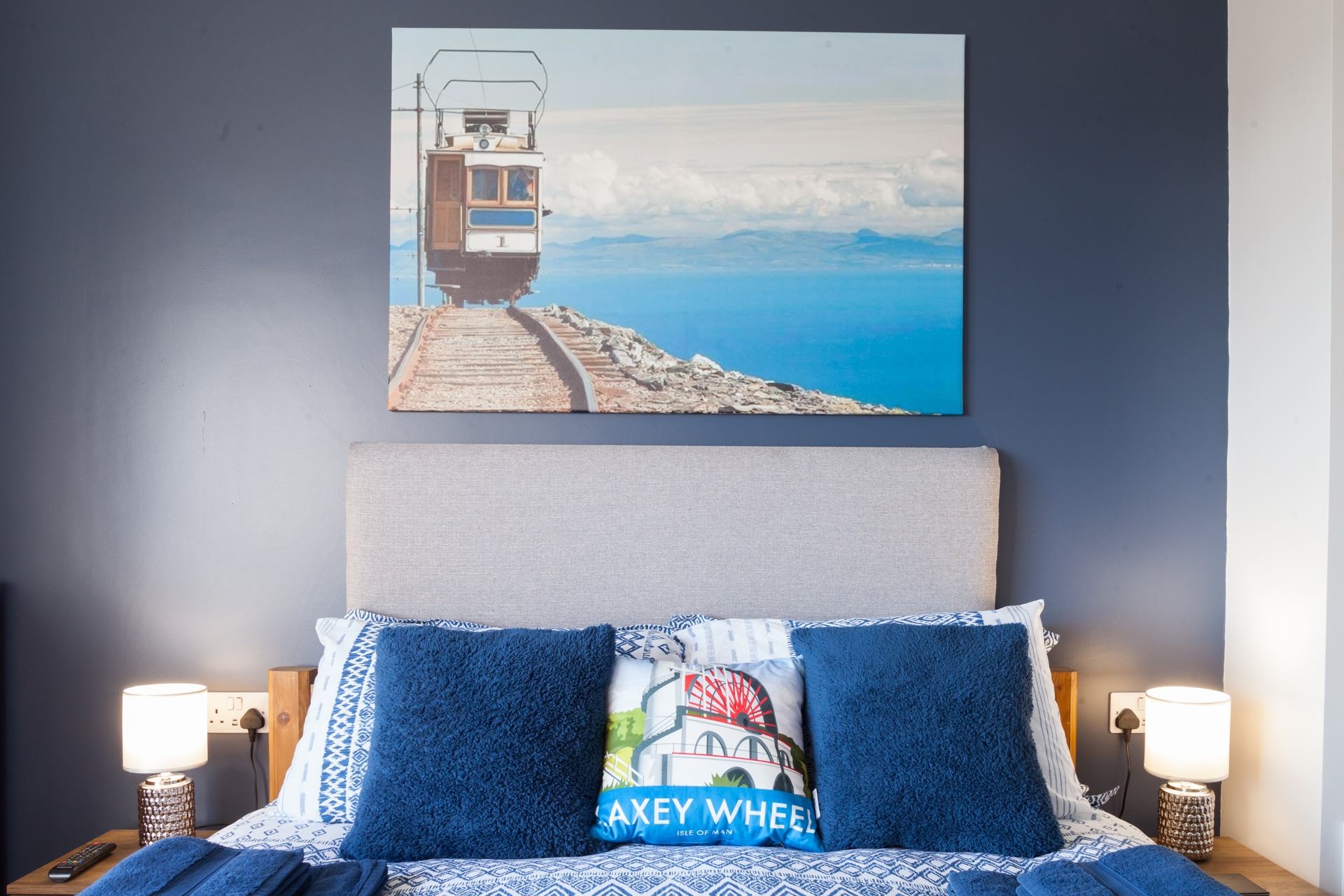 Bedroom 2: Zip and link super-king or twin bed with storage and views of the sea and tram.
