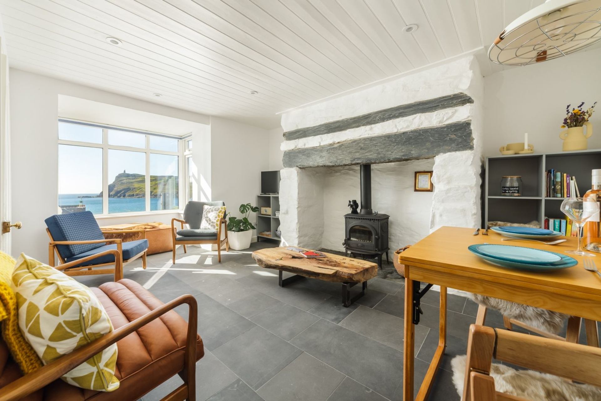 The living room has a magnificent Manx "Chiollagh" stone fireplace with wood burning stove, comfortable seating and a fold-out dining table seating up to four people. Kick back and relax on the chairs in the bay window of the living room which overlooks Port Erin bay and Bradda Head, often bustling with beachgoers in the summer months. The beach is a popular spot for dog walkers in the quieter months too! Baljean is pet friendly too, perfectly geared up to bring them with you as the property features a washroom with a basin around the side of the property.