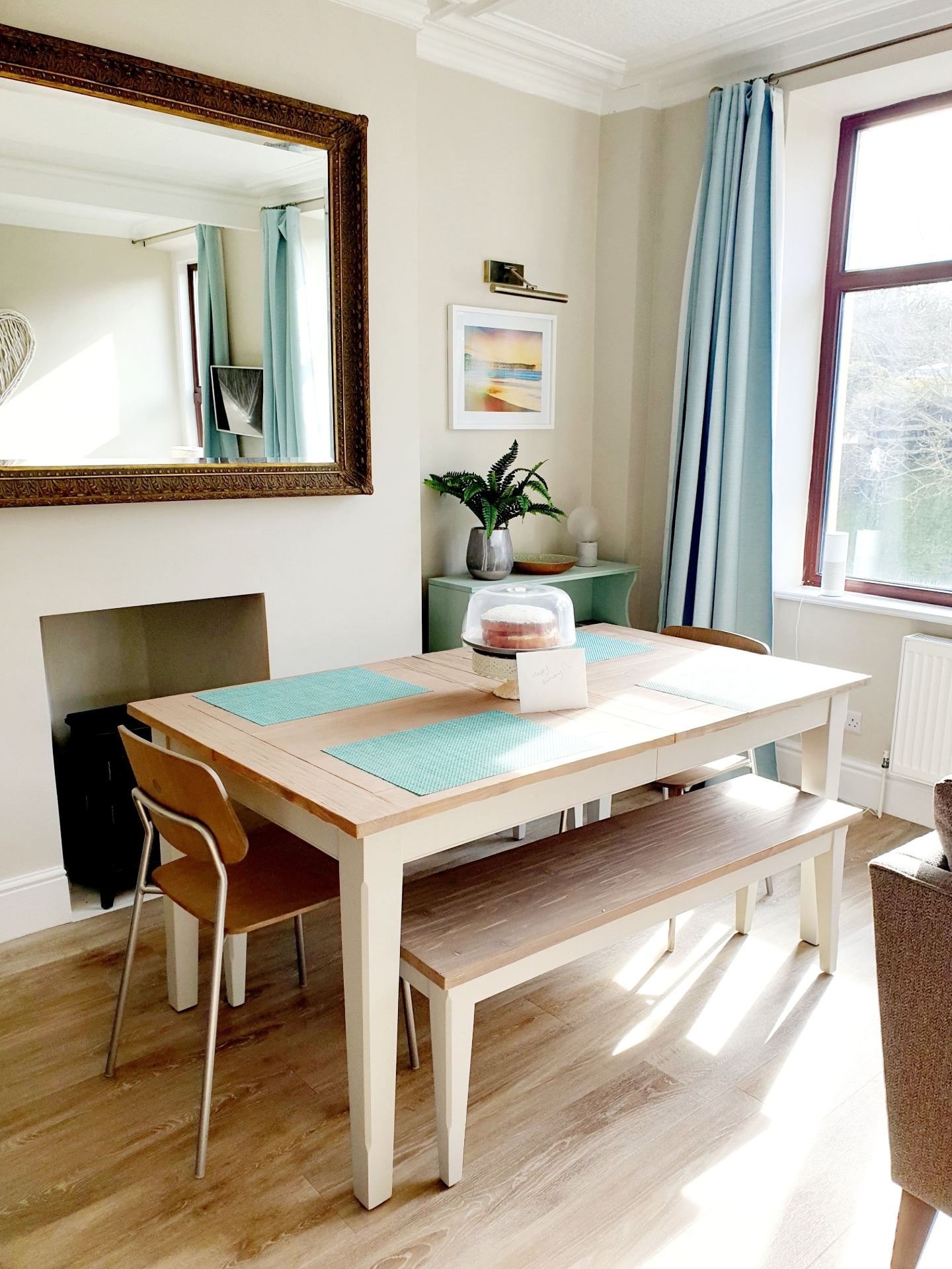 Dining room: Dining room table with seating for 6, display cabinet.