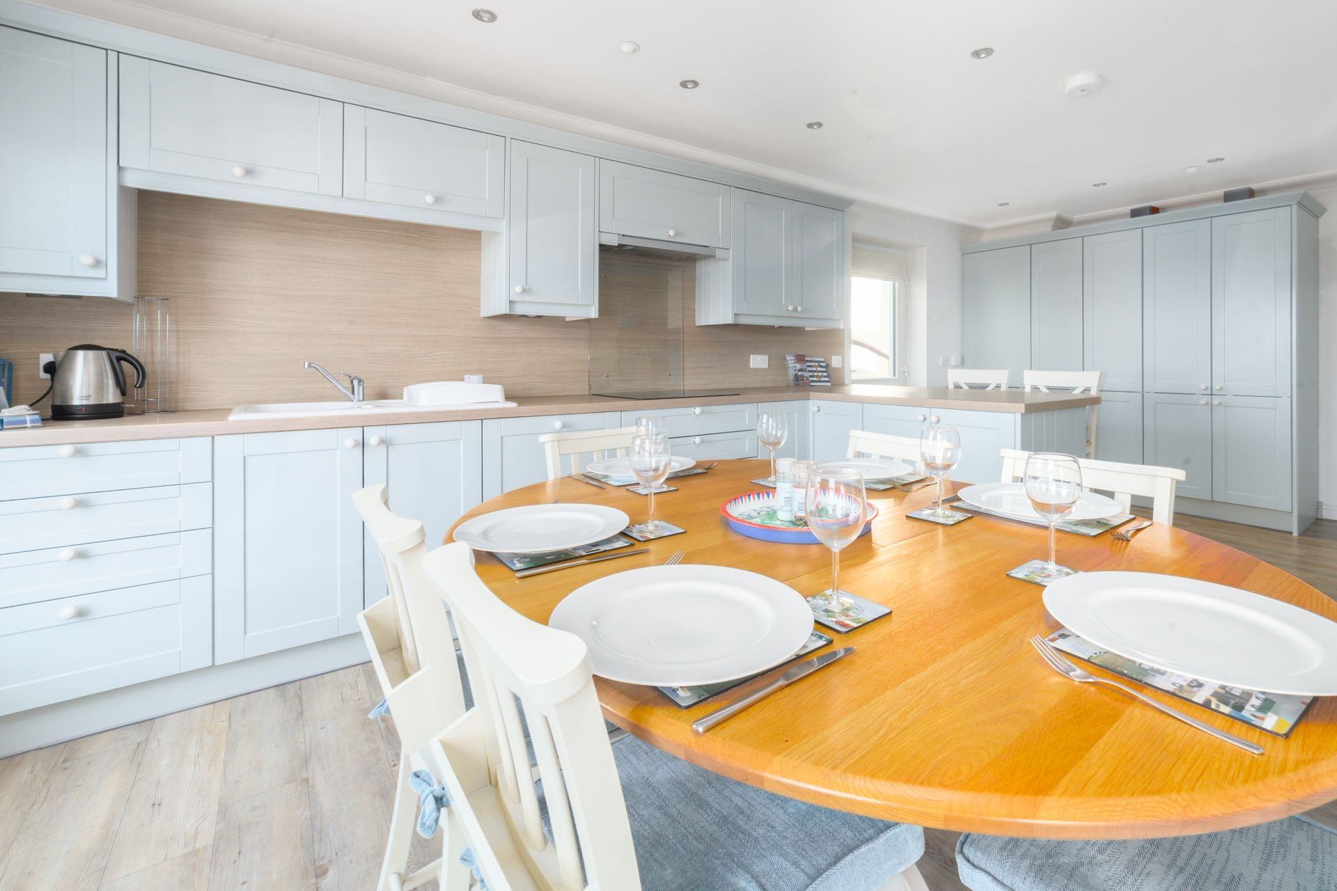 Kitchen: Well-equipped kitchen featuring; oven, hob, fridge, freezer, dishwasher, microwave, washing machine, tumble dryer and dining room table with seating for 6.