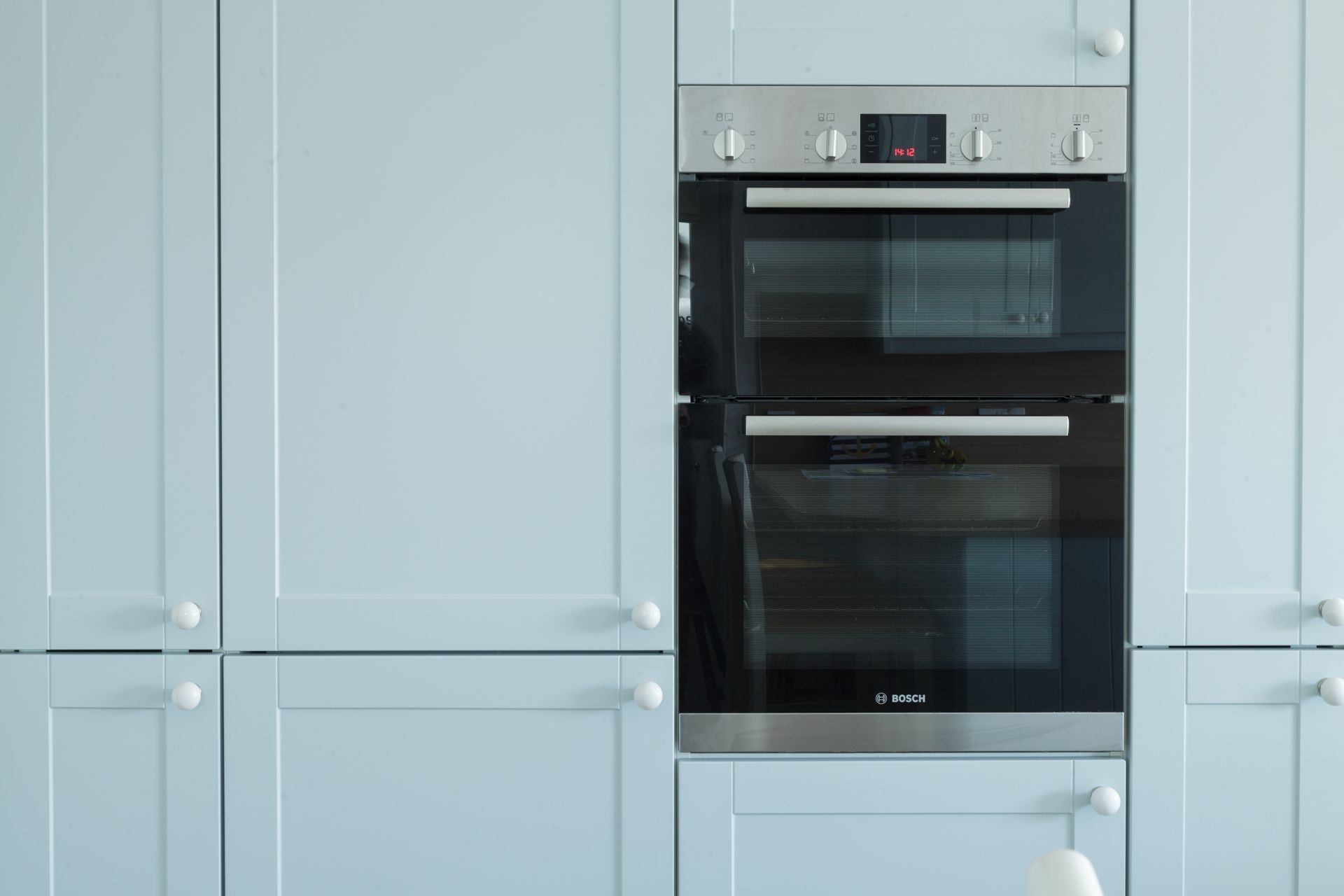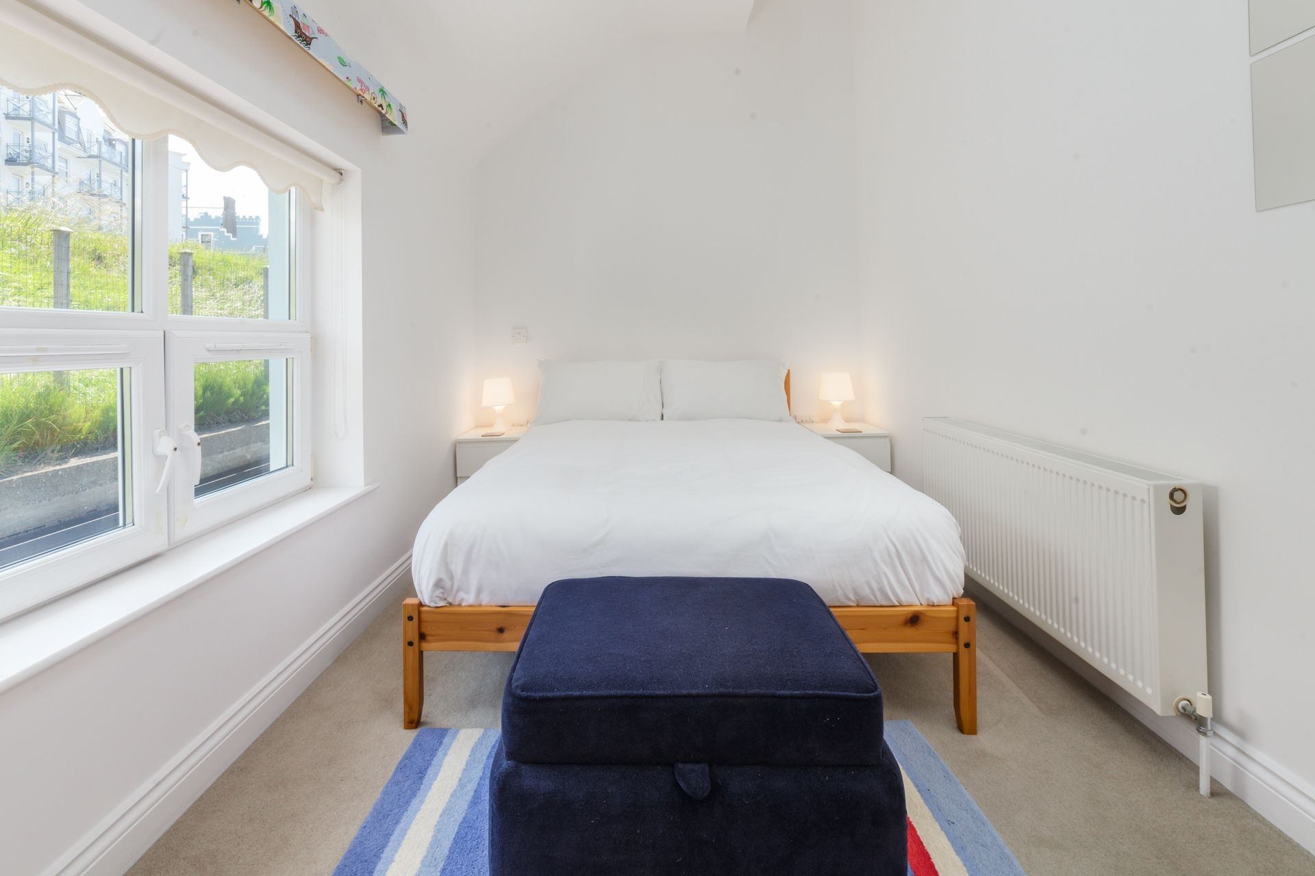 Bedroom 3: Double bed, bedside tables and built-in wardrobe.