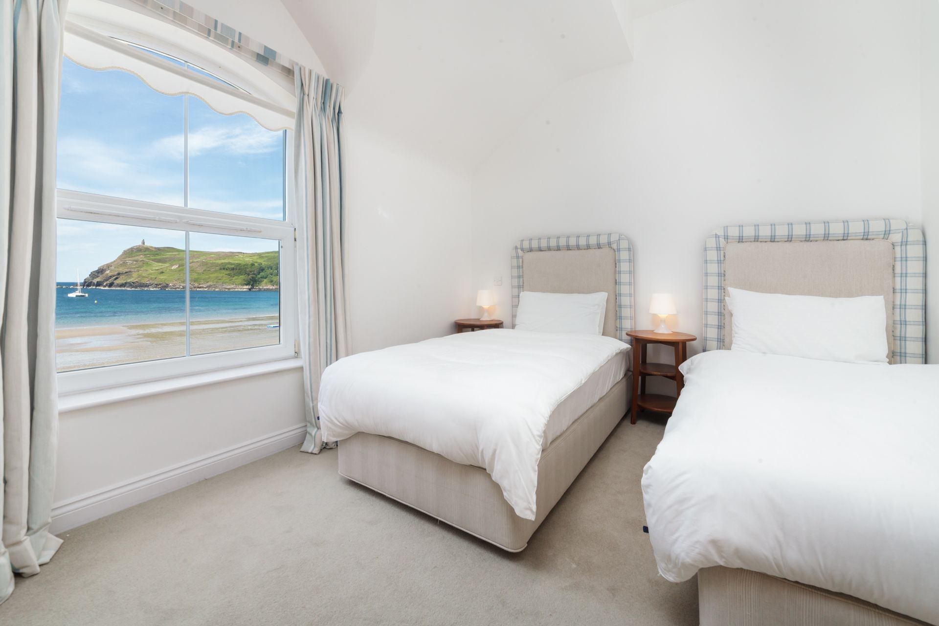 Bedroom 1: Twin beds, bedside tables, wardrobe.