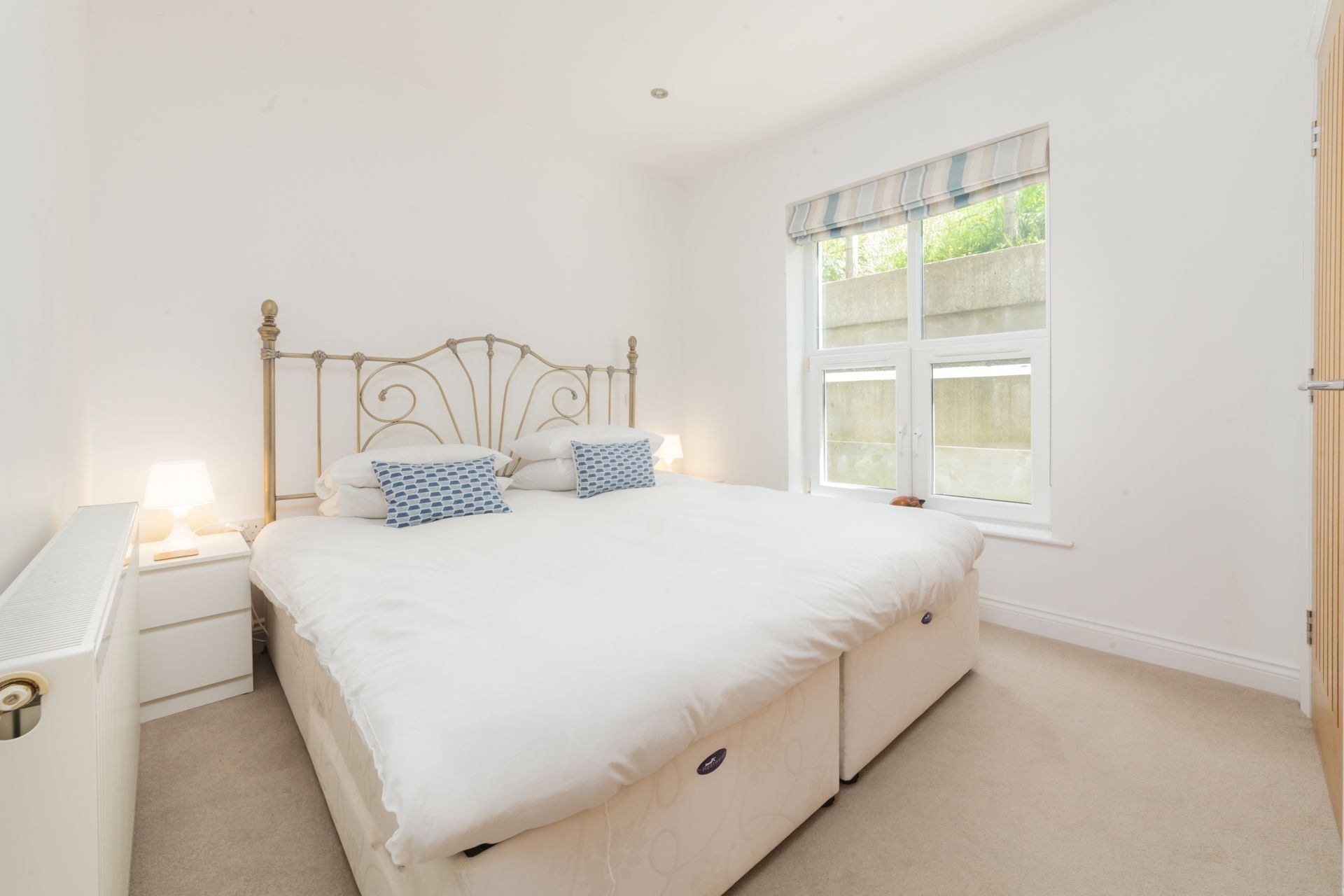 Bedroom 2: Super king size bed, bedside tables, wardrobe and chest of drawers.