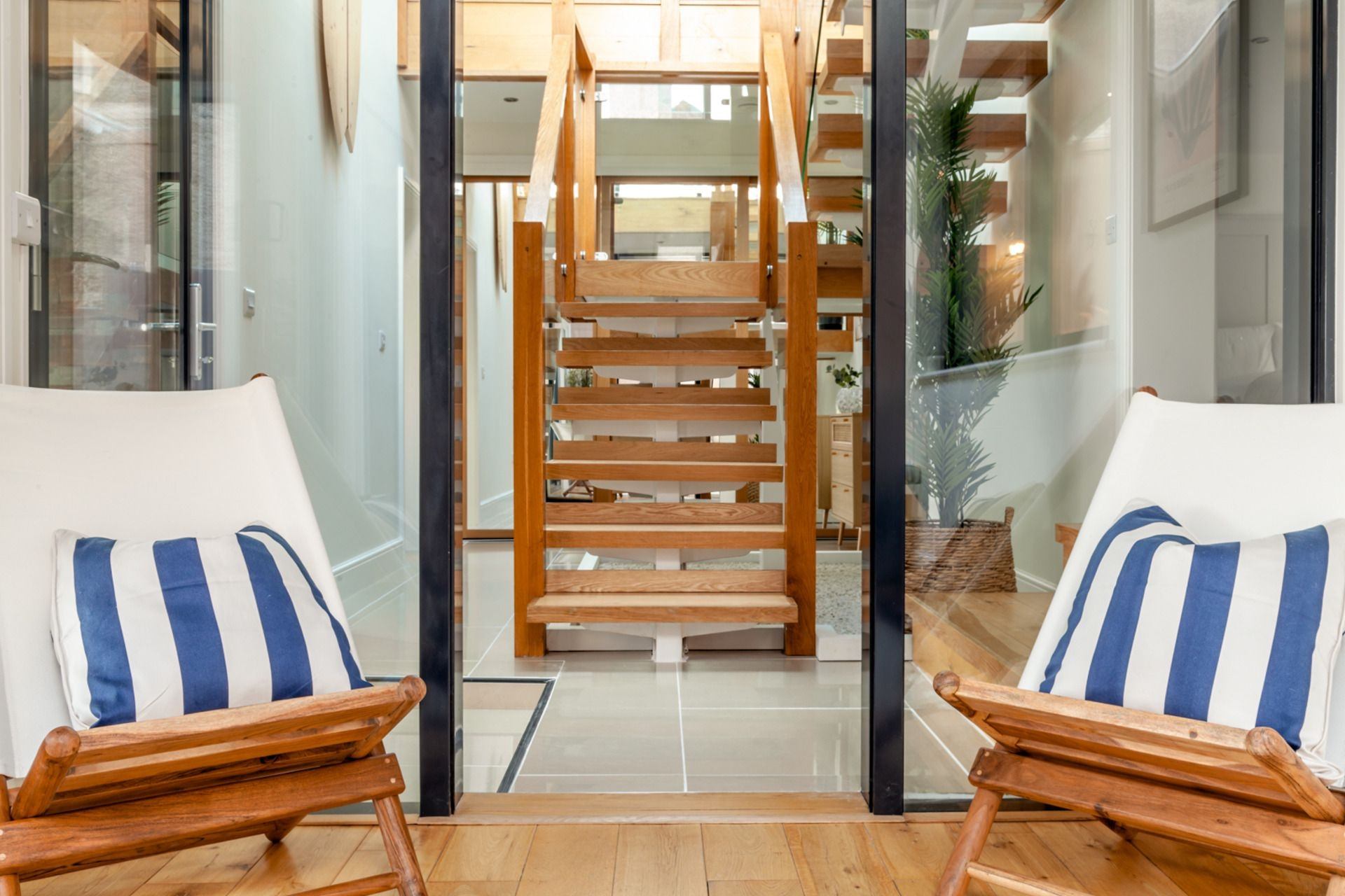 The property has a walled garden at the rear and two balconies at the front with comfy deck chairs for you to put your feet up, enjoy your coffee and watch the world go by.